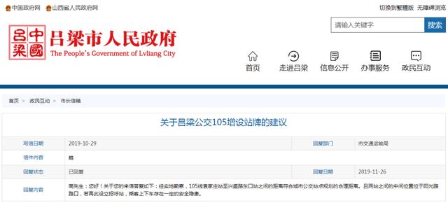 回复内容:高先生:您好!关于您的来信答复如下:经实地勘察,105线袁家庄站至兴盛路东口站之间的距离符合城市公交站点规划的合理距离。且两站之间的中间位置位于阳光路路口,若再此设立招呼站,乘客上下车存在一定的****隐患。