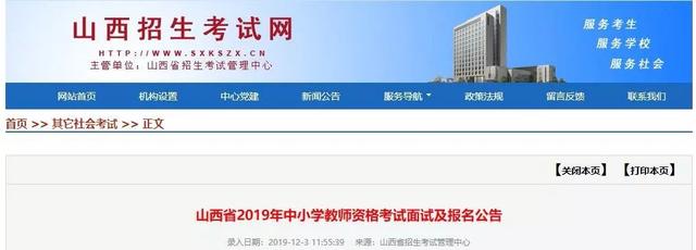 2020年1月4日-5日面试!山西2019年教师资格面试时间发布