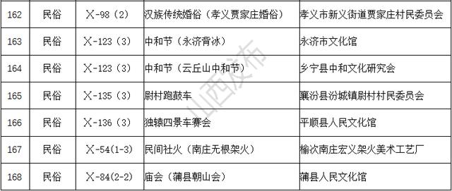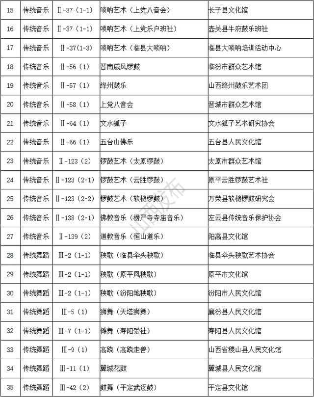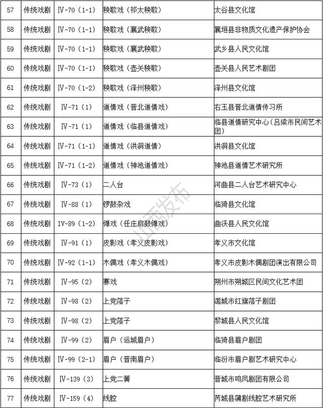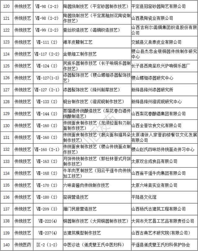 近日,文化和旅游部网站发布通知,根据检查情况,经各地申报,文化和旅游部同意对793个涉及更名、撤销、职能调整的保护单位进行调整和重新认定、对14个检查不合格的保护单位给予限期整改、对38个检查不合格的保护单位取消其保护单位资格。同时,文化和旅游部办公厅公布《******非物质文化遗产代表性项目保护单位名单》,山西168个。