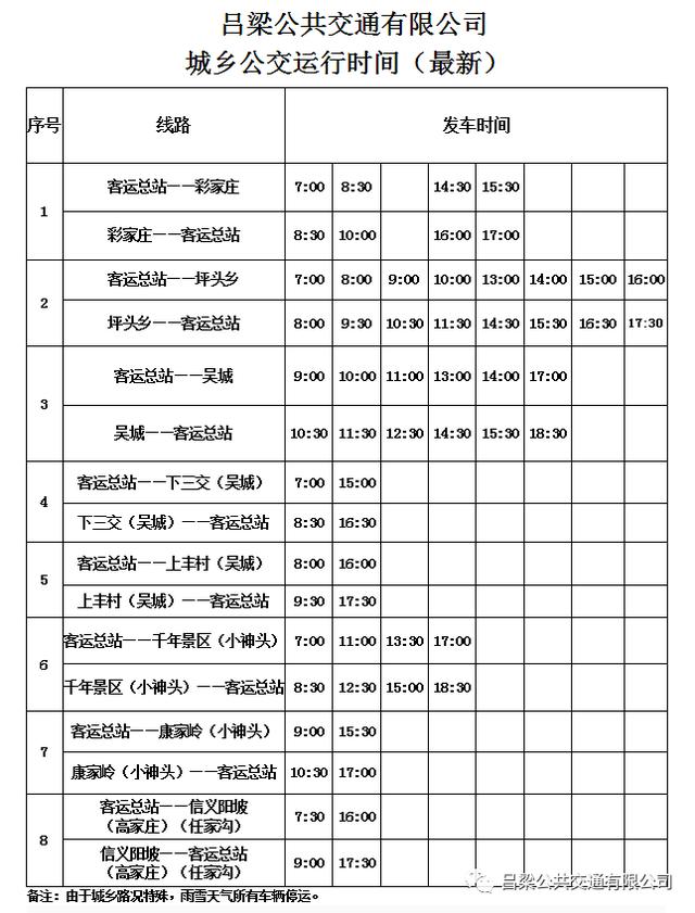 吕梁公共交通有限公司城乡公交运行时间(****)