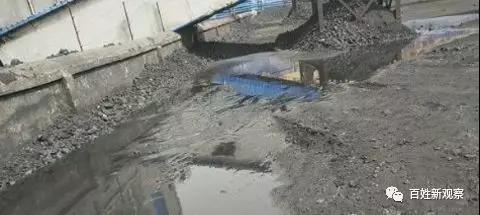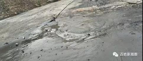 在现场看到从锅炉房伸出一根铁管子,从铁管子排查黑煤泥水,通过厂区地面进行下渗如图片:
