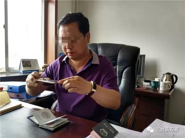 吕梁市国土局离石区分局监察大队张队长拍摄本报工作人员的证件